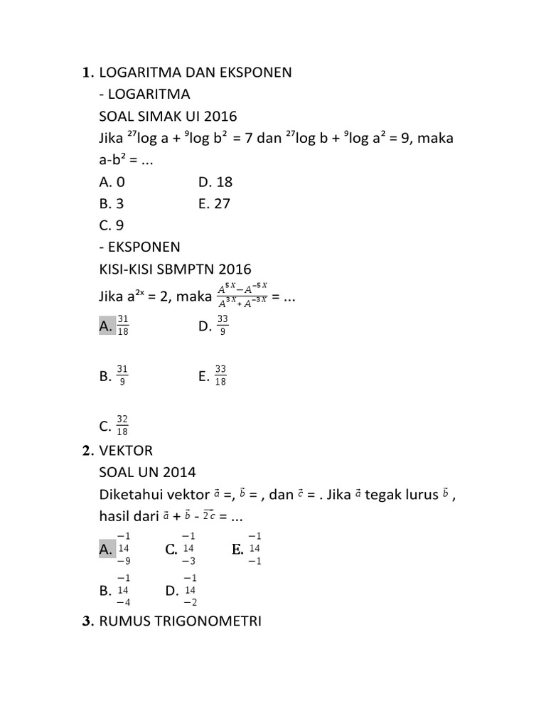 untuk "Soal Soal Eksponen Sbmptn / Latihan Soal Sbmptn Matematika Dasar Eksponen : C = numerus atau domain logaritma."